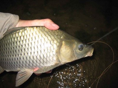Dvě hodiny jsme zkoušeli všechno možné, ale bez úspěchu. Až Kubis nasadil svoji velikou černou nymfu. Druhým hodem na ni dostal kapra velkého kolem čtyřiceti pěti centimetrů. První ryba byla samozřejmě puštěna zpět. Za deset minut jsem měl záběr já a zdolal jsem malého kapříka. Hned vedle mě zasekl Albie, ale jeho kapr nebyl o nic větší. Už jsem si myslel, že jim toho kapra snad neusmažím, když Kubis zasekl a vyndal z vody stejně velkého kapra jako předtím. Došel jsem si pro něho, protože Kubis volal, že něco takového nebude vůbec zabíjet natož jíst. Domů jsme dorazili k večeru a Kubis okamžitě odjel, jen abych ho náhodou ještě nepřemlouval ke konzumaci toho fuj.